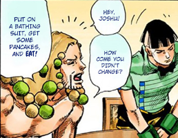 BORN THIS WAY??? GAGA??? sorry thats just..... araki ok king!! but once again just cool ass stands and the stand user is really cool. it just makes me wonder what the fuck the higashikata family is really at because ALL OF THEM sus ASF. and the eldest son is no where like.... also WHO THE FUCK IS JOSUKE. HIS OTHER HALF. UGH. SO GOOD. i literally love this part sm already