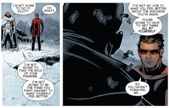 So this still focuses on Cyclops mostly but again, my main issue with last volume, is them being stuck with our favorite demon in hell. It's boring, it's confusing with the art, and honestly just not that fun or enjoyable to read.