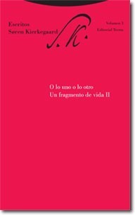 Muchas de las veces es complicado encontrar la edición leída en goodreads y este es uno de los casos. Lo he leído en editorial Trotta y la segunda parte de este libro contiene: La Estética del Matrimonio, El equilibrio entre lo estético y lo ético en la formación de la personalidad, y Ultimátum; de los cuales leí los primeros dos.