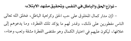 "المقصد الشرعي من وضع الشريعة إخراج المكلف عن داعية هواه، حتى يكون عبدا لله اختيارا، كما هو عبد لله اضطرارا" -الشاطبي "فالدخول تحت تكاليف الشريعة صعب على النفس، لأنه أمر مخالف للهوى وصاد عن سبيل الشهوات فيثقل عليها جدا لأن الحق ثقيل، والنفس إنما تنشط إلى ما يوافق هواها لا إلى ما يخالفه." و لذلك عمد الكاتب إلى رد من يعارض مبدأ التسليم بمزالق مختلفة، و أرى أن أكثر المزالق تأثيرا يهدر فيه التسليم زعمهم معارضة العقل للنقل، و قد فصل الكاتب فيه جزاه الله خيرا. وما أراه أثر في نفسي أقوال بعض علماء المسلمين بعد اشتغالهم بالفلسفة و علم الكلام؛ كما روي عن الرازي أنه قال" ياليتني لم أشتغل بعلم الكلام، وبكى" ، وكما يقول الجويني: "لقد خضت البحر الخضم، وخليت أهل الإسلام و علومهم، و دخلت في الذي نهوني عنه، و الآن فإن لم يتداركني ربي برحمته فالويل لابن الجويني، وها أنا ذا أموت على عقيدة أمي أو قال: على عقيدة عجائز نيسابور" .