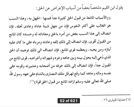 تم بحمد الله. مبحث ضخم في عرض وتفكيك أبرز المزالق والمقولات المنحرفة في التفكير الحداثي، مذكرًا بمبدأ التسليم لله عز وجل كقاعدة أساسية يقوم عليها الإسلام. فائدة الكتاب للباحثين وطلبة العلم الشرعي عظيمة، لكنه لا يُعدَم من فائدة لعامة الناس، إذ فيه من القواعد والأصول ما بحثت عمّن يشرحها ويفصّلها بهذه الطريقة ولم أجد من قبل. يوجد بعض الإطالة في بعض الفصول وذلك لكثرة الاقتباسات، والتي يمكن تجاوزها دون التأثير على الفهم العام للفكرة، إذ يبدو أن الشيخ جعل من الكتاب مرجعًا متكاملًا يمكن الرجوع والإحالة إليه في حال استشكال بعض السؤالات ذاكرًا جميع أدلته من القرآن والسنة وأقوال العلماء. من أعظم القراءات التي قرأتها في حياتي، ويمكن تعظيم الفائدة بسماع بودكاست الشيخ على اليوتيوب باسم "بودكاست نقطة" حيث يشرح الشيخ الكثير من الأفكار التي ذكرها في هذا الكتاب وكتبه الأخرى.