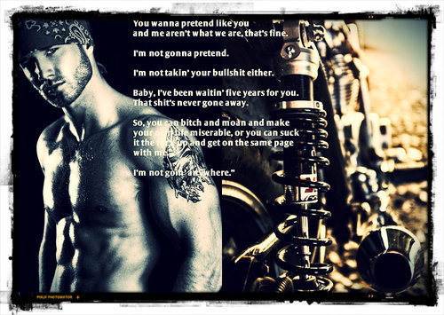AMAZON Also on Kindle UnlimitedBaby, I’ve been waitin’ five years for you. That shit’s never gone away. So, you can bitch and moan and make your own life miserable, or you can suck it the fuck up and get on the same page with me. I’m not goin’ anywhere.