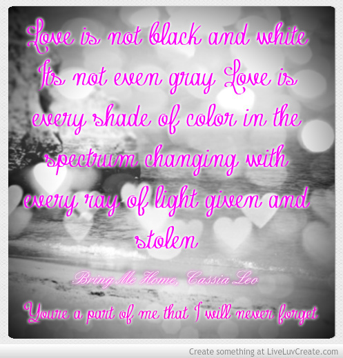 “Love is not black and white. It’s not even gray. Love is every shade of color in the spectrum, changing with every ray of light given and stolen.”