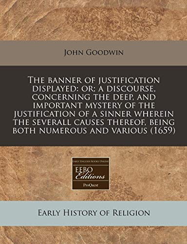 This book represents an authentic reproduction of the text as printed by the original publisher. While we have attempted to accurately maintain the integrity of the original work, there are sometimes problems with the original work or the micro-film from which the books were digitized. This can result in errors in reproduction. Possible imperfections include missing and blurred pages, poor pictures, markings and other reproduction issues beyond our control. Because this work is culturally important, we have made it available as part of our commitment to protecting, preserving and promoting the world's literature. ++++The below data was compiled from various identification fields in the bibliographic record of this title. This data is provided as an additional tool in helping to insure edition identification: ++++"The banner of justification displayed: or; a discourse, concerning the deep, and important mystery of the justification of a sinner wherein the severall causes thereof, being both numerous and various"Goodwin, John, 1594?-1665."To the Reader" signed John Goodwin.With marginal notes and a final advertisment leaf.Copy has title page cropped with loss of title and imprint; text cropped at head with loss of text.[20], 66, [2] p.London: printed by E.C. and are to be sold by H Ever[sden ..., 1659]Wing (2nd ed.) / G1150AEnglishReproduction of the original in the Sion College Library++++This book represents an authentic reproduction of the text as printed by the original publisher. While we have attempted to accurately maintain the integrity of the original work, there are sometimes problems with the original work or the micro-film from which the books were digitized. This can result in errors in reproduction. Possible imperfections include missing and blurred pages, poor pictures, markings and other reproduction issues beyond our control. Because this work is culturally important, we have made it available as part of our commitment to protecting, preserving and promoting the world's literature.