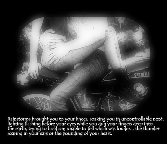 Rainstorms brought you to your knees, soaking you in uncontrollable need, lightning flashing before your eyes while you dug your fingers deep into the earth, trying to hold on; unable to tell which was louder…the thunder roaring in your ears or the pounding of your heart.