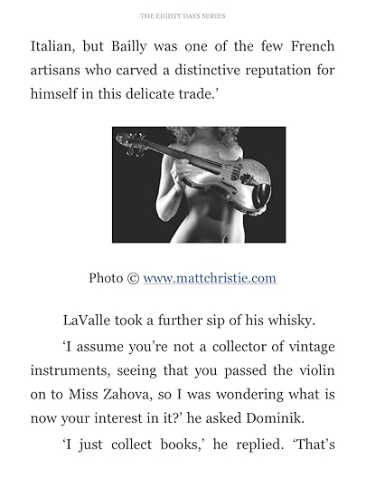 Summer has been in a unfulfilling but stable relationship with the conductor, Simone. Simone notices things and lets her go on with her life. Summer decides to move back to London. She has had a very successful stint playing her violin and meets back up with her friend, Chris. Chris conveniences Summer to play with his band Groucho Nights, she agrees. She leaves her Bailly violin in the green room and steps up to play with the band. The next day in a frantic discover her violin was stolen. What happens next is series of events that bring Dominik and Summer back together in search of the violin. As well as find some interesting information about her Bailly, ones that spark the creativity side for Dominik to complete his next book.