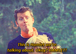 Hamlet groaned. “Oh, stop pitying yourself. You were desperate and unhappy at home, you’re desperate and unhappy now. Nothing has changed, except that now we’re closer to your goal.”He never, ever stops fucking whining. Hamlet isn't my favorite character in the world, but he has my compassion, because he actually tells Romeo to, well, shut the fuck up and grow some balls.