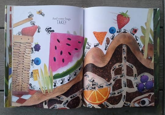 The illustrations are really cute and the rhyming is fun. The words are very simple and well-suited for babies, but the detailed pictures and catchy rhythm work for kids a few years older too. The "some bugs take" page showing the ants stealing food from the picnic basket has mesmerised all three of my kids.
