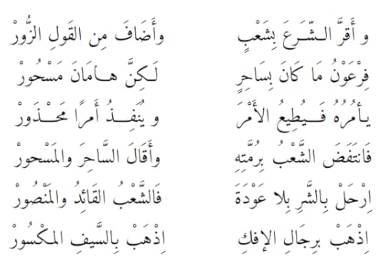 إحم أبتدي منين لفين مش عارف بس القصايد كويسة لكن كنت ساعات بأزهأ في النص وأجري القصايد لإن النهاية كانت متوقعة أو الكلمات لا تحمل جديد يشدك وفيه قصايد غصب عنك كنت تقعد تقراها للأخر على العموم هي تجربة جديدة وخصوصا فكرة القصيدة المسرحية -اللي أنا شايفها عبارة عن مسرحية من فصول متعددة فقط- وعجبتني القصيدة المسرحية الأخيرة وخصوصا فكرة رجوع الشهيد ربما هي اللي شدتني في الديوان كله تجربة لا باس بها جيدة