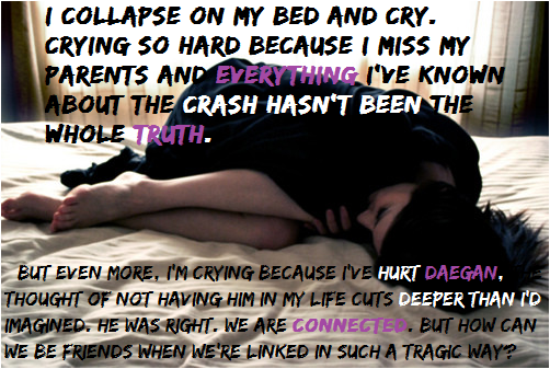 The one thing that sorta bothered me, (and the reason I didn't give it 5 stars) was the love triangle.. Or was it a square? Anyways it bothered me when she wasn't sure if she liked Milo or Daegan more. She was pinning after a guy that she had nothing in common with. Not only that but she had a guy right there that was perfect for her. I just didn't even understand how she couldn't realize it sooner than she did.