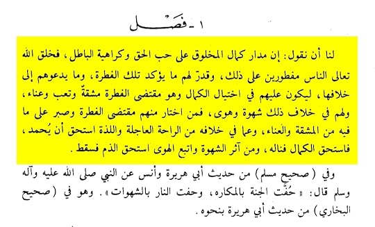 المقدمة تستحق أن تُفرد في كتاب مستقل، فموضوعها مهم جداً وحقه أن يراجعه الإنسان بين الفينة والأخرى، ففي هذه المقدمة الرائعة يتحدث فيها عن مسالك الهوى ومداخله وعن حظوظ النفس، ويذكر بعض الأمثلة والنماذج التي يلج منها الهوى دون أن تلحظه! أسوق هنا بعضها: