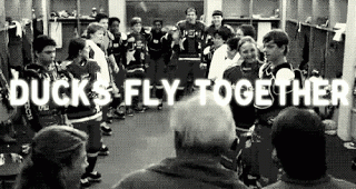 Ties, like it's predecessors. has a male protagonist in the form of Ryan, and for those who remember him from Lengths can remember him not really being particularly nice, in fact he is an ass. But don't worry, he has some redeeming qualities in Ties. When we first get to Ryan's chapters he is in work, and one thing that I love about this meeting is the reference to The Mighty Ducks. This movie is years old and I have never seen it mentioned in any book. I love these movies and they never get old, it's made me smile to see this and then read the proceeding paragraph, and even though the gif below isn't the scene that's talked about, I couldn't help but post it.