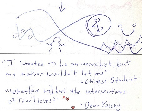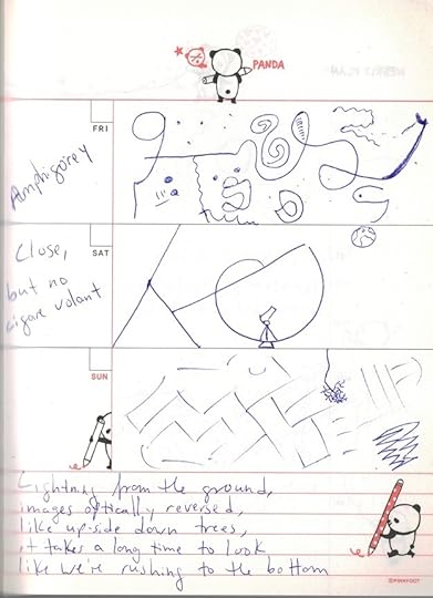 At some point in my late 20s, I decided to kick up the habit again. A friend gave me a cutesy little Korean notebook, and I started to make a series of marks on the pages until I saw connections in them. Sometimes I would elaborate on those connections, but mostly I just let them be and would assign some bizarre name.