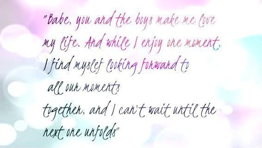 "You and this family are the best thing that's ever happened to me. Every day when I wake up and when I lie down to go to sleep at night and about a billion times in between, I thank God for giving me y'all. Mostly, I thank God for your stubborn nature and for the fact that you didn't give up on me."