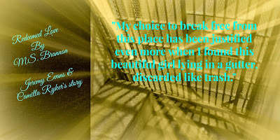 M.S. Brannon delivered another fabulous installment to this series. I have been a Sulfur Heights junkie right from the first book and I have been gladly feeding my addiction ever since! Investing time in a series makes you feel as though you know all of the characters. I have the seedy, filthy, crime infested town of Sulfur Heights pictured in my mind. I have smiled, gasped, cried, and loved right along with all of the members of the Evans family. I was so ready to step inside of the mind of Jeremy Evans.