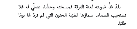 " إنّ خروجنا من بين قَوْسي الوطن قد وضعنا في خانتين متعاكستين من العقوق. لـم أكن بارّة بـه لأنني أفلتّ من فكّيـه الـمفترسين، باكرًا، ومضيت بدون رجعة. وكان الوطن عاقًّا بـها، نبذها وهي في آخر العمر ولـم يشملها بخيمة حمايتـه. "