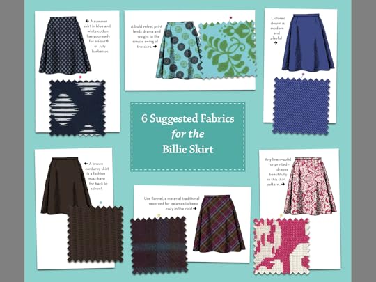 This book was one of the best sewing books I've read in a long time. The author included many special features that made this book special and unique in my opinion. For instance, for each pattern she showed six different variations and for each of those six variations, she included images of six different fabrics to use for the item. The patterns include tops, cardigans, coats, skirts, dresses, and accessories.