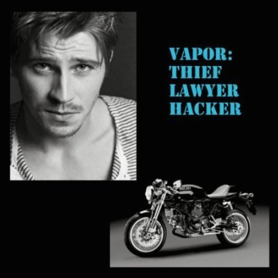 Vapor is big-time crazy for Ides- he'll do absolutely anything for her; she only has to say the word. He's dominant, jealous, an asshole, angry, a thief, a kick-ass lawyer, a hacker and dabbles in inventions. He's obsessive over Ides, stalker-kind of crazy, if he doesn't want to be her, he wants to screw her... After talking to each other in a chat-room for hackers the past month, they can't stop thinking about each other.