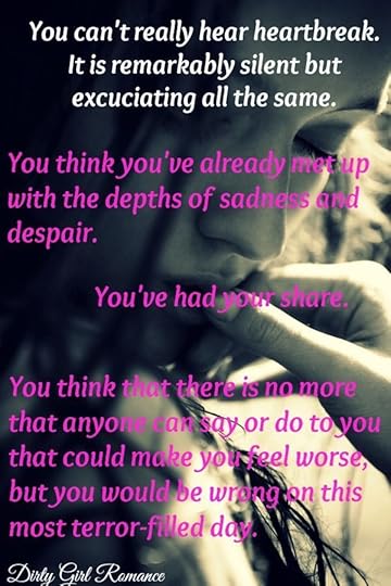 You have left me feeling broken, shattered and numb. I feel like I'm in a dark hole, with no light and there is no end to this devastating path that I am on. ( ok well there is a light at the end). You have rendered me speechless. Yes speechless. Me, I always has something to say about everything. But with you and with this book, I'm lost for the words for it.
