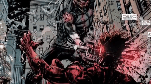 A favor de los escritores está el hecho de que los dibujantes ponen el listón tan alto que, en comparación, no es de extrañar que el guión nos parezca más simplón. Si bien es verdad que parte de una premisa ya vista en la catalogada durante décadas como la mejor película de la historia del cine, hay que recalcar que la intriga se mantiene constante y a buen ritmo, aún no habiendo tantos mamporros como en otras obras del diablo de Hell's Kitchen.