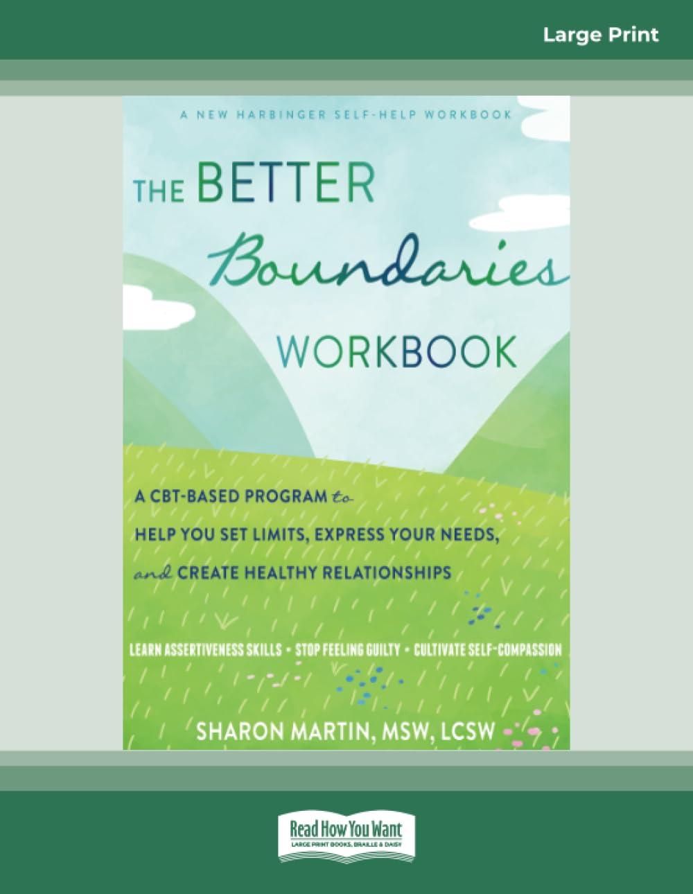 The Better Boundaries Workbook is full of practical information and guidance to help you understand the importance of having boundaries, how to set effective boundaries, how to communicate them, and how to handle violations, how to fine-tune them. It discusses how to set boundaries with the wide variety of people in your life: children, friends, colleagues, employees, bosses, family, and significant others. This is a workbook, with plenty of opportunities to explore using the information in your own specific situations.