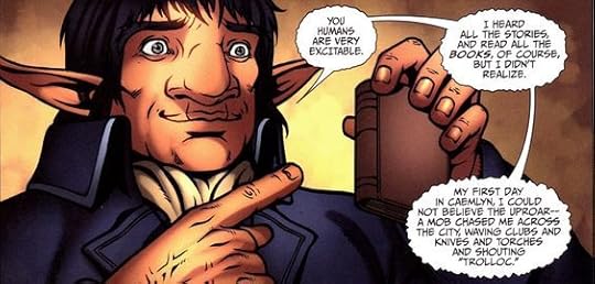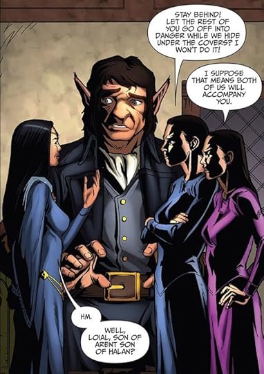 On a happier note, Loial! I love Loial because I'm, well, a human mortal, and he makes every scene better. He looked really cool in this volume, and I think the artists nailed how I imagine an ogier would look: He's like an ent combined with a dwarf, or Treebeard combined with Gimli (who are both coincidentally voiced/played by John Rhys-Davis in the movies who also plays Sallah in Raiders of the Lo-! ok, that's too far, tangent over. Lord of the Rings was one thing but Indiana Jones is barely even the same genre).