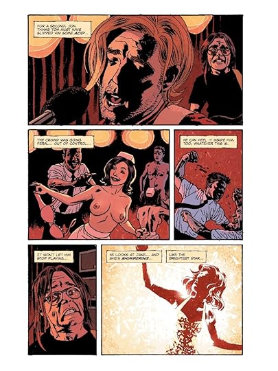 Because my dislike for the whole grunge scene played directly into Brubaker's nefarious plans for me. My sense of internal unease only grew as I read this distressing tale. Josephine, the titular Fatale herself, is stricken with amnesia after being stricken by . . . well, I don't want to give that away. She finds herself at the mansion of a one-hit-wonder grunge band who are down on their luck until she shows up. But what kind of luck does she bring? Good at first, then bad, in spades.