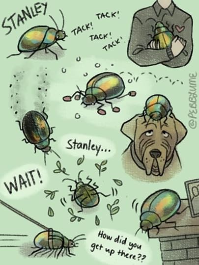 Draco scowls and pushes the thought to the back of his mind, flopping onto his back and stretching out on top of his autumn quilt, smiling idly when Stanley scrambles up onto his chest, even though it means he has to hold each piece of parchment up above his face in order to read it. He doesn’t care, because a happy Stanley is a wonderful thing, turning and settling against Draco’s breastbone and investigating his shirt buttons with sleepy antennae.