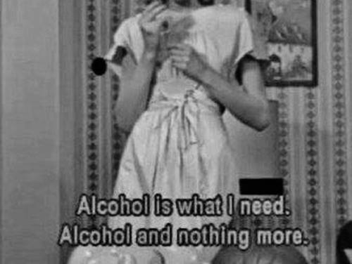 It depicts a girl that is a drunk. As in DRUNK. She is her comfortable self when she is drinking. When she is not, she can barely think.