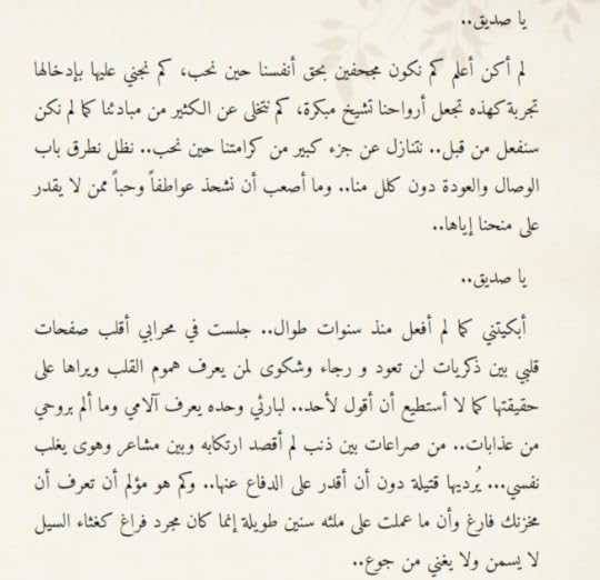 أنا أحبّ هذه النّوعية من الكتب... رسائل قصيرة فيها مِنَ البوْح الكثير..فيه ما يُشبهُنا ..و فيه ما لا يُشبهنا،و لكن نتمنى بشدّة لو كان يُشبهنا. كانت الرسالة 16 رسالتي المُفضلة..و أحببتُ كثيراً آخر رسالتيْن 19 و 20 لامسوا فيي أشياء و أشياء...