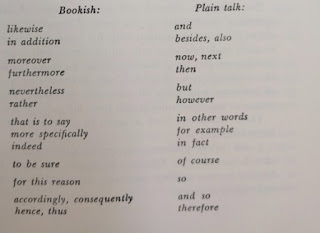 - Language is made up on sentences, not words - Ties within a sentence should not run in different directions. The reader should be able to read along. - Affixes hinder plain talk because the reader must disentangle it from the word it is attached to before he can understand the sentence - Talk about people - Use verbs often - Use adjectives sparingly - Don't focus too much on condensation. It can actually make your writing more difficult to understand