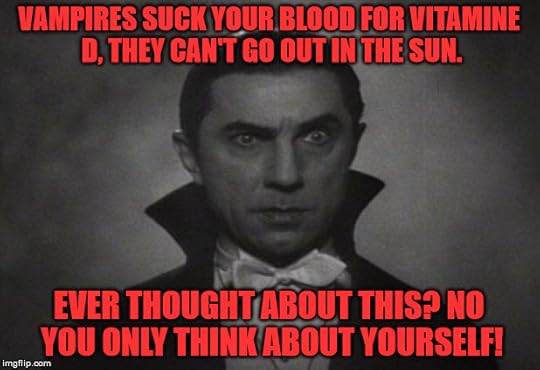 There was quite a bit of ridiculousness in this novel, such as the romance. Alex meets his love interest, Elizabeth, when he spots some people in Civil War-era costumes and follows them to her house (there's a party, I think??? And Alex is curious because he lived through that time but DON'T WORRY HE NEVER OWNED SLAVES). Then he lies his way inside and has a conversation with her, only to confess that he lied. But don't worry! They are now in love. And instead of turning her into a vampire, he's just going to marry her and let her die in forty or so years. Because that's better than being with the one you love forever, I guess? I don't know, it's vampire logic.