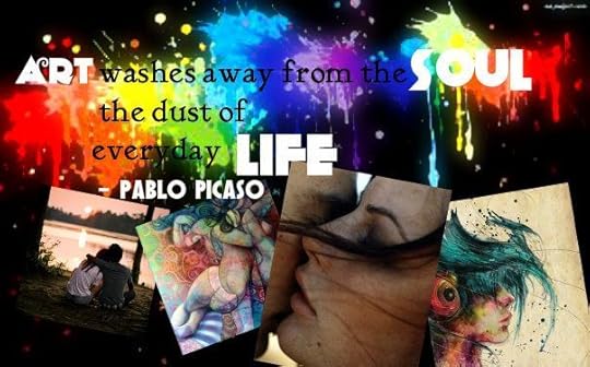 At the back of the studio is a huge primed canvas, five by five at least, with a thin layer of gray wash on it. The artist has begun to paint over it, thick smears of paint applied with a palette knife instead of a brush. It’s so intense that I’m drawn forward, needing to see it beneath the light. I flip on the overhead lamp and lean in, admiring the thin threads of yellow and red and purple in the blackish-blue squares of paint. And right through all that inky midnight is a deep red gash, a harsh V carved into the overwhelming darkness, revealing how artist has taken the time to build the layers, each one with a different dominant color. It’s both inviting and repellant, despair trying to devour a hope that won’t die. It looks edible and painful and I want to touch it but am afraid I’d sink in and get lost.