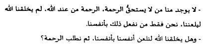 وتساءلتُ وتساءلت طوال قراءتي: هل الاعتراف بذنوبنا للآخرين قد يقلل من حملها على نفوسنا أم يضيف إلى الحِمل خزيا؟! هل الشعور بالذنب يلازم الإنسان مدى الحياة، ألن يُذهِبه أبدًا الندم والاستغفار؟! هل كُتب على الطيبين إذا ما أخطأوا أن يعتادوا تلازم العذاب؟! ولكن.. الله رحيم، إذا فلابد أن نرحم أنفسنا أيضًا.. هكذا قالت نوران"جميعنا نستحق الرحمة.." وأنا أصدق وأؤمن..