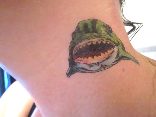 "Sharks," said Crick, "motherfucking sharks. Their eyes the shape of murderers' intentions and their mouths filled with these," Crick walked to the back of the wagon, and dragged a tether from hand to hand until he'd pulled a shark jaw into his grip, and he held it aloft for Mom to see. "Teeth," he said, "teeth as," he stuttered, "teeth as sharp as razor blades."