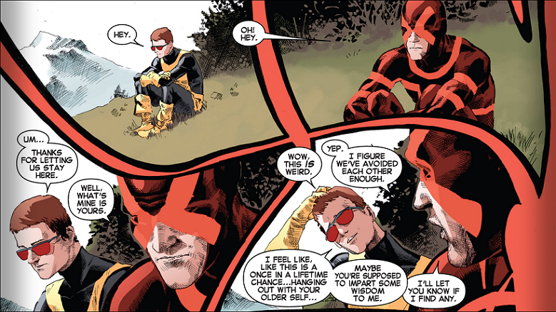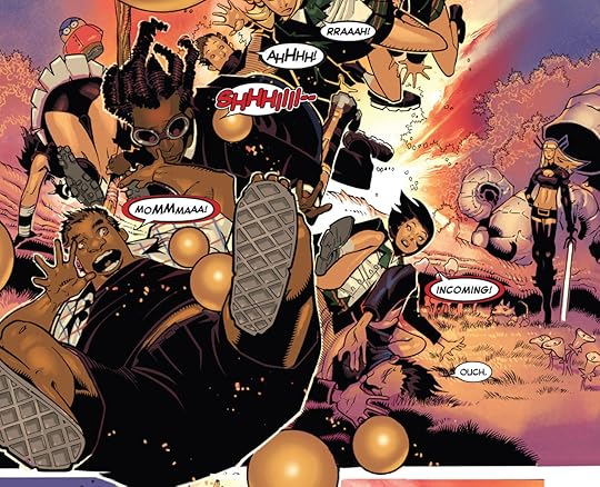 I'm not a Bachalo fan. I thought I was, I've liked some stuff he's done, but his art is what puts me off picking up Uncanny X-men, and the reason why I stuck with All-New. Because when he's not on art - this book is really good! Kris Anka and Marco Rudy should just rotate on this all the time, and maybe get Bachalo in occasionally if they fall behind. Rudy is only on art for the last issue but it looks fantastic. He incorporates Cyclops malfunctioning power into some of his power layouts, which is also a cool way to remind readers that Cyclops isn't at 100% anymore.