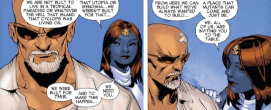 Now Xavier is finally dead for good and for a long time (four years and counting) and how could anyone who has been reading X-Men avidly be ever led to believe that he is not quietly suffering about it otherwise? BECAUSE HE IS. Mystique saw through it (mostly because she was boning Xavier pre-demise, ugh, this will never stop bugging me), and Mags is finally learning to admit it. I think he has denied it. He has pushed it down and now the floodgates are ready to open.