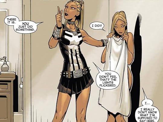 3. An Inhumanity tie-in. Why do the X-Ladies, when they get bored, always choose shopping as their outlet? Ceramics? Crocheting? Spelunking?