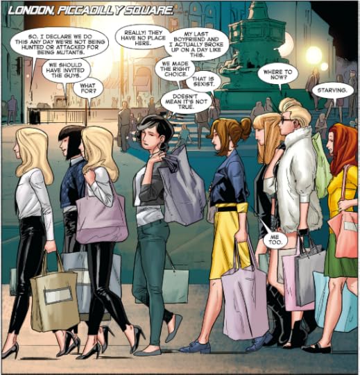 There is an amusing Girls' Night Out with Emma Frost, the Cuckoos, Kitty Pryde, Jean Grey, and Ilyanna Rasputin. Oh yeah, and the other girl.