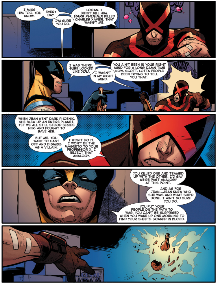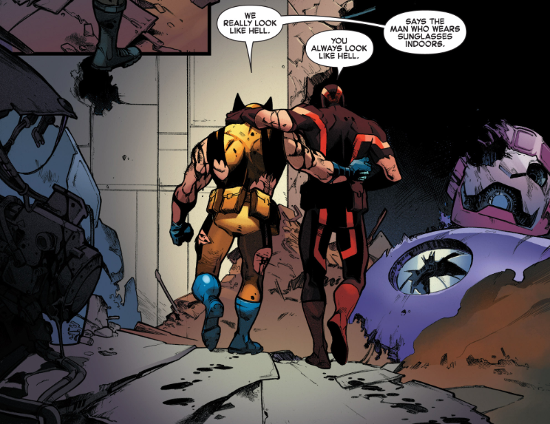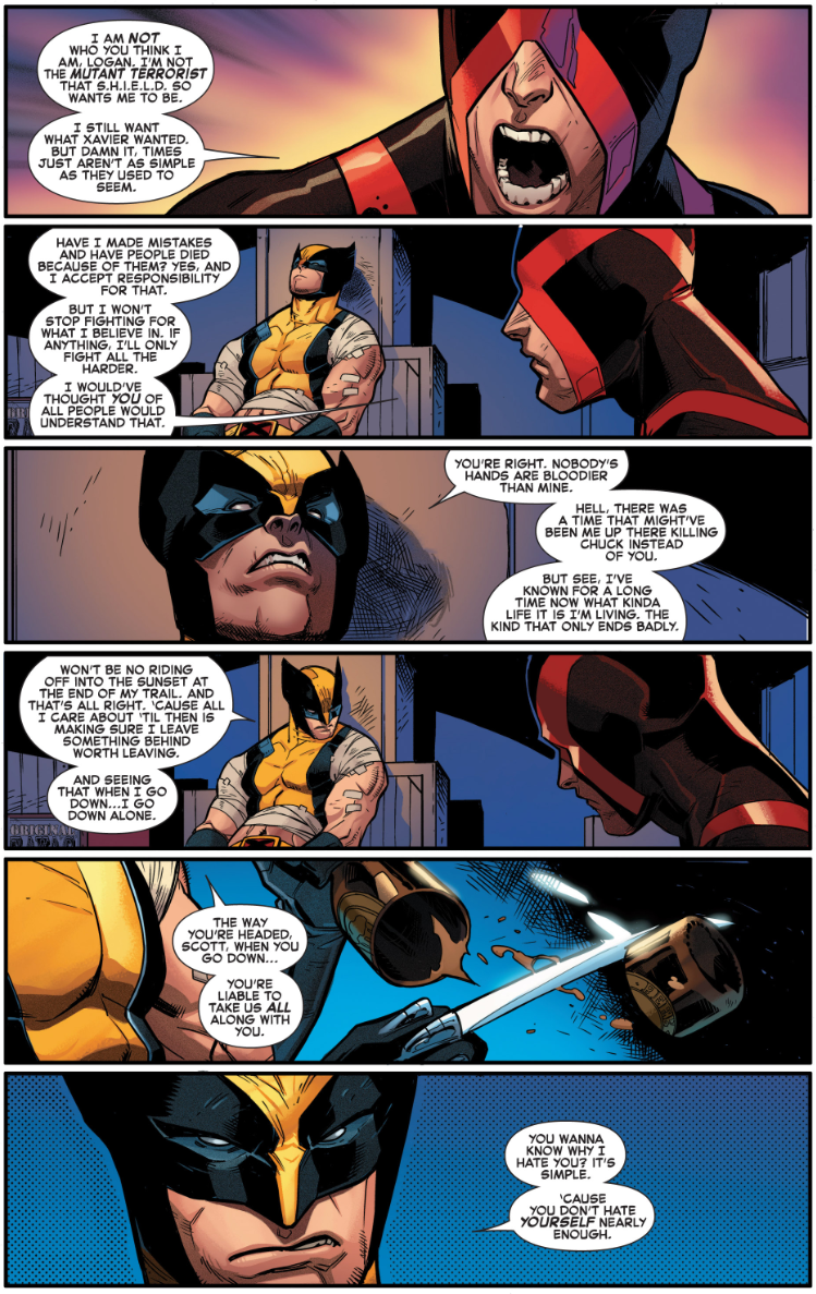 But more importantly, he writes one of the most meaningful, heartfelt, authentic moments between Wolverine and Cyclops I've read in a long time.