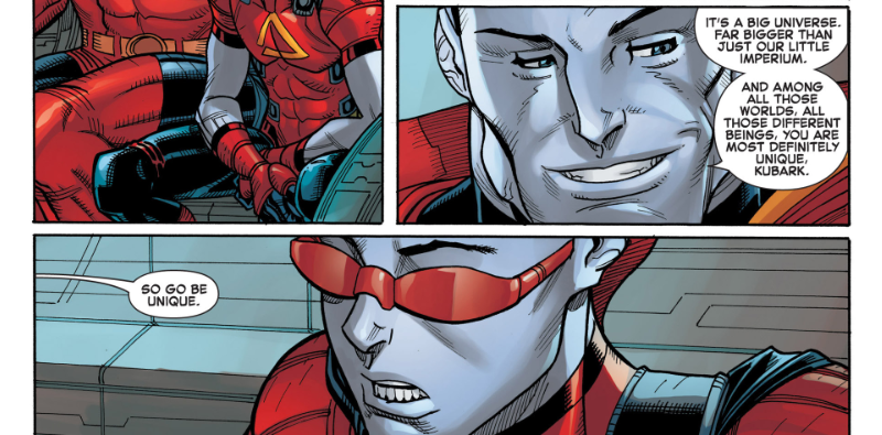 Lastly, the Annual issue focused on Kubark a.k.a Kid Gladiator who may like to punch his way through galaxies but is a real softie underneath it all. He was sent back to Shi'ar in his old academy during the Phoenix Force crossover event, but he quickly realized that he misses JGS and Earth after all, but is too proud to admit it to himself, especially in front of his classmates and father.