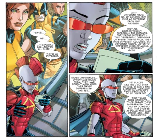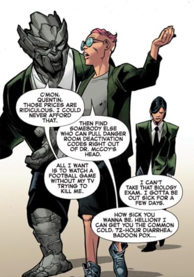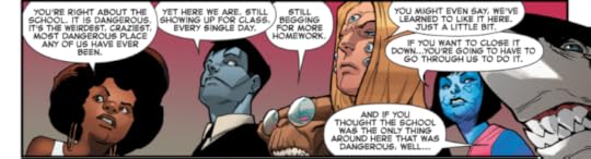 The plot was good too, though the annual was a little weak in my opinion. It tied into Infinity, which I haven't read, and was very much removed from what had been happening at the school. Plus the panels were hard to follow with little dialogue and some abrupt transitions.