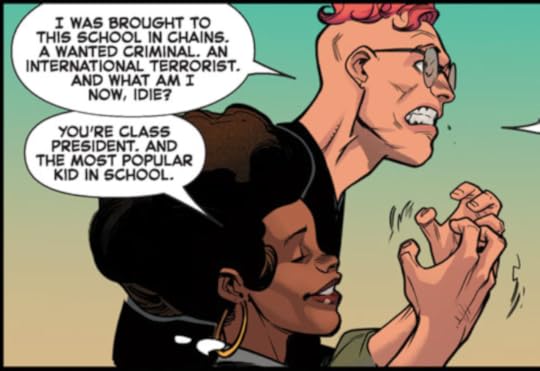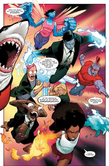 This whole series has just been so good. The strongest thing about it is the cast. You can't help but be a fan of the new class of X-Men that is Idie, Quentin, Broo, Eye Boy, Shark Girl, Evan, Sprite, Kid Gladiator, and the others. What's really great about this volume is that we actually get to see all of them in action again. More than that, we see them talking and interacting and being students and awesome and lovable.