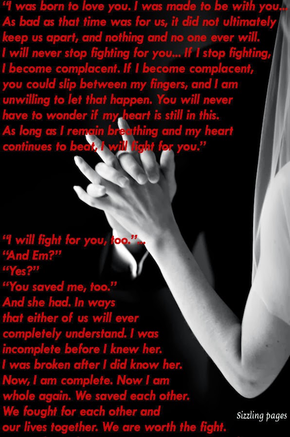 “You don’t have my heart because you are my heart, and you are my lungs. Without you I am dark and hollow inside. Without you I can’t breathe. Without you I don’t have a reason to breathe. You light up the darkness, Em, and you fill in the hollowness.”