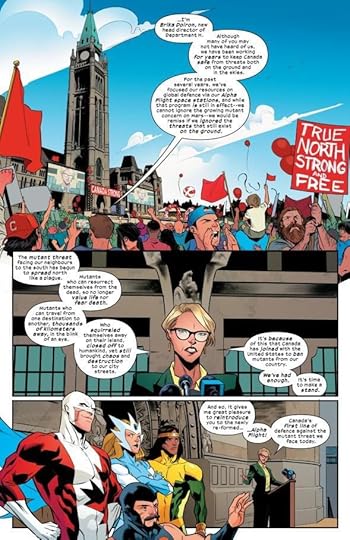 There's also a rouge element of Alpha Flight that is trying to 'Underground Railroad' any Canadian mutants to the Shi'ar empire. (If you feel there's a lot of similarities to Marvel's Civil War, you're not wrong) ---------- Great little update to the Alpha Flight team. Canadian super teams aren't really appreciated much. ---------- Bonus: Bochs Jr? That's a DEEP callback Bonus Bonus: Got to keep it tied to the X-Men with the Fang (a new, dumb codename, Daken)