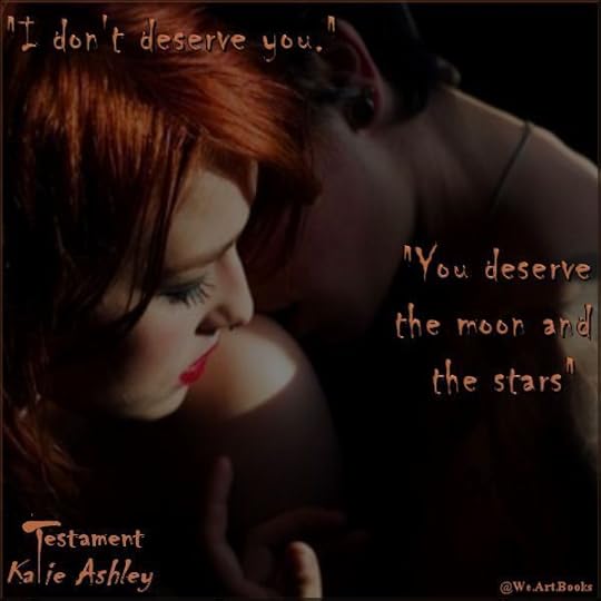 I love switching gears and throwing in a new genre to break up the monotony. With Katie Ashley's "Testament," that is exactly what happened. Whether she is writing about sexy rock stars, a teenage bounty hunter or a woman desperate to have a child, Katie spins a tale so intriguing and engaging that you don't put it down until you have read every word.