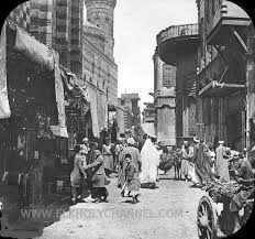 ويمر وجيه مصرى متفرنج يرتدى الملابس الاوربية والطربوش التركى فى مركبة يجرها حصانان ويقودها سائس انجليزى يمر شيخ ريفى وقور قى ملابس سوداء راكبا خصانا عربيا وجيها يمر بائع الليمونادة حاملا جرته المعدنية باحدى يديه ودورقه واكوابه النحاسية باليد الاخرى يمر بائع شباشب متجول حاملا حزمة من النعال المغربية الخمراء والصفراء وهى تتارجح من طرف عمود طويل وهنا نشاهد لاول وهلة وزيرا يرتدى قفطانا بديعا من الساتان الابيض والعنبرى " تسير مع الكاتبة قى منعطف ضيق فتجد نفسك فى مستعمرة السروجية وتسير فى حارةة محاطا بواجهات الدكاكين المعلق حولها الطرابيش دكاكين لبيع الاقمشة الحريرية المشغولة بخيوط الذهب والفضة نوعيات قديمة من الاسلحة اشغال الابرة سجاجيد الصلاة الواردة من تونس الرمادى والازرق الغامق ذات اللون الرمادى او الجزائرية دات اللون الاحمر والاخضر او الواردة من ازمير او الفارسية تجد دواليب مصنوعة من خشب الابنوس ومطعمة بالؤلؤ وبعد دورة او اثنتين تجد نفسك فى سوق النعال صنادل صغيرة قرمزية او نعال قطيفة مشغولة بخيوط الذهب والخرز وحبات اللؤلؤ وهناك اسواق خاصة مثل سوق الحلويات وسوق الدخان واسواق النحاس وسوق المصنوعات الاندلسية حيث تباع البرانس ومصنوعات البربر