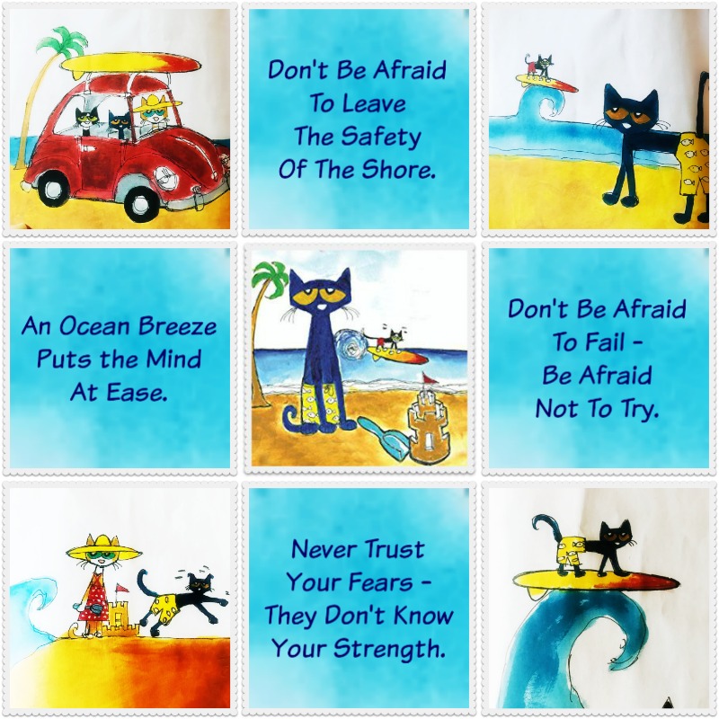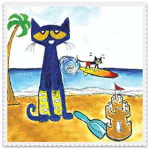 In Pete the Cat: Pete at the Beach, Pete is spending the day at the seashore. He has fun collecting shells and building a sand castle. But the beach is very hot. There is a whole ocean for Pete to cool off in, but it looks scary. Pete’s brother, Bob, offers to teach Pete to surf. Will that be enough to help Pete get over his fear of the water?