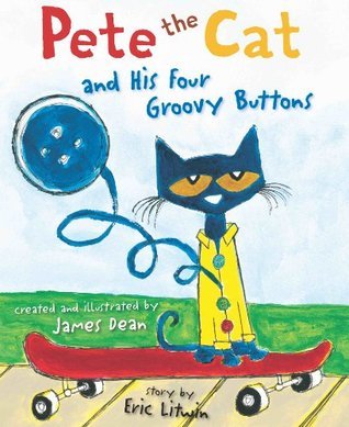 Audience: Primary-Math Theme Genre: Picture Book-Math-Comedy Book Share: Have you ever had a shirt you loved, but it kept falling apart? Well this happens to Pete, in the book Pete the Cat and His Four Groovy Buttons. Pete doesn't get upset though, goodness no! He keeps movin' on. If you like songs, counting, and cats with buttons, you are sure to love this book. Read this book to find out what happens when Pete loses ALL his buttons.