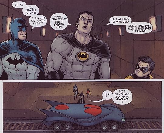 Now, there's a lot to unpack here, thanks mostly to the fact that, while this is technically in the New 52 universe, it's also built on everything Morrison did with Batman pre-New 52. Which basically equates to, in this reality, everything from Morrison's earlier stuff technically happened, but the timeframes are squashed down to a point where they hardly make sense. But, really, all you need to keep in mind "all that other Batman stuff actually happened." Confused? Sure! Me too!